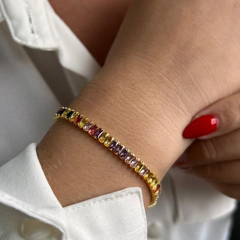 Pulseira Baguete Zircônia Média Banho Ouro 18k/Prata 925