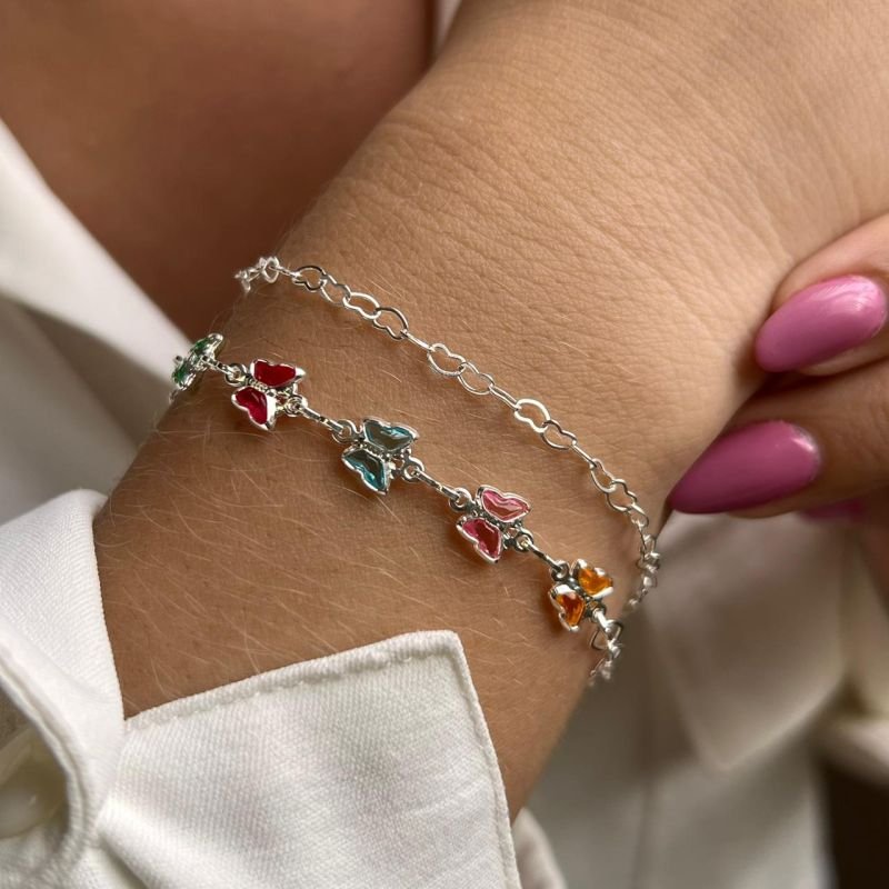 3. Pulseira Borboleta Multicor Banho Prata 925