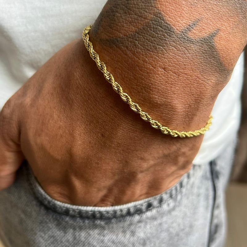Pulseira Cordão Baiano Tonny Aço Inoxidável Dourado/Ródio