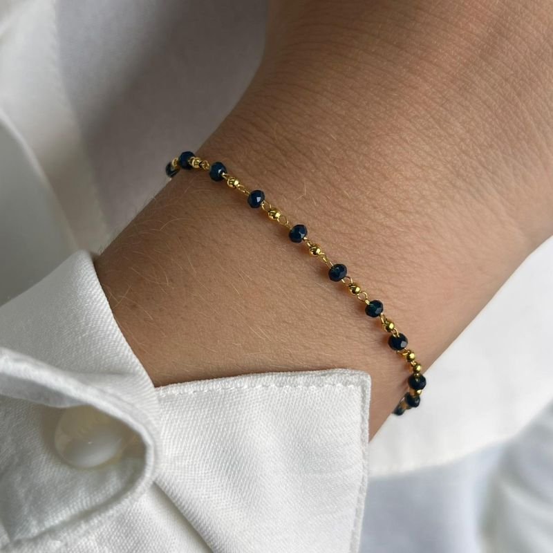 Pulseira Cristal Azul Banho Ouro 18k