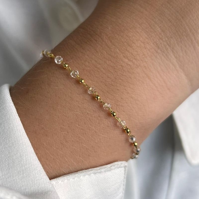 3. Pulseira Cristal Incolor Banho Ouro 18k