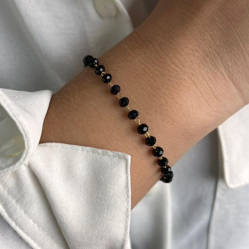 Pulseira Cristal Preta Banho Ouro 18k