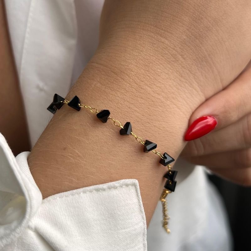 3. Pulseira Cristal Preto Banho Ouro18k/Prata 925