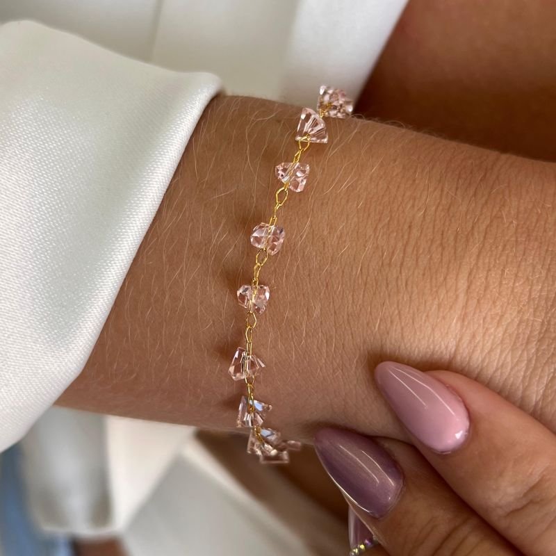 Pulseira Cristal Rosa Banho Ouro 18k/Prata 925