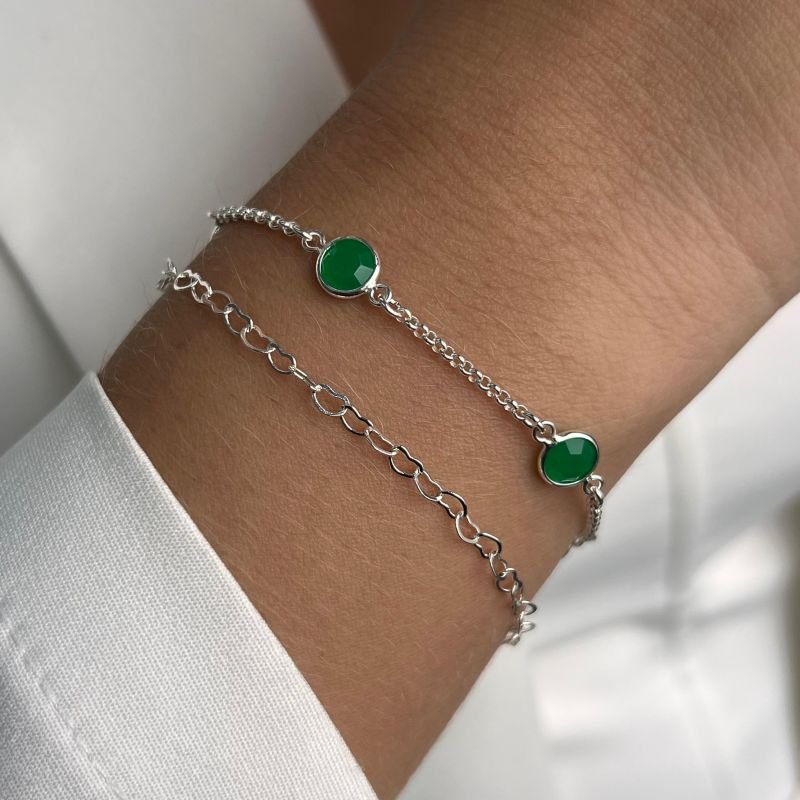 3. Pulseira Duas Voltas Verde Banho Prata 925