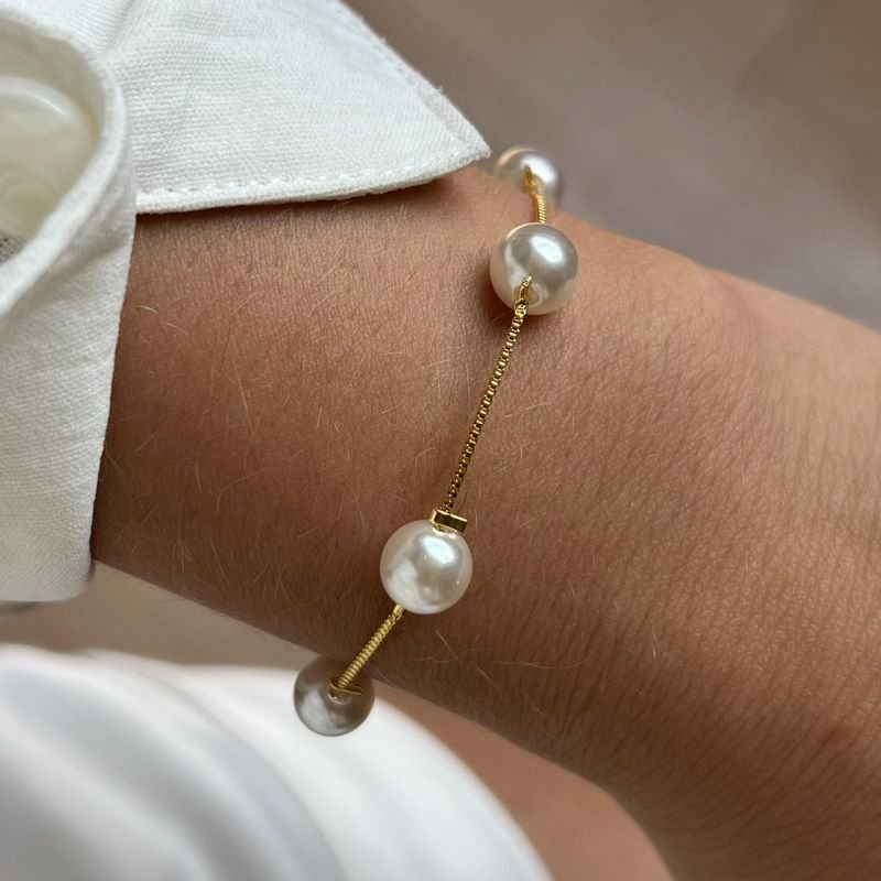 Pulseira Com 4 Pérolas Banho Ouro 18k