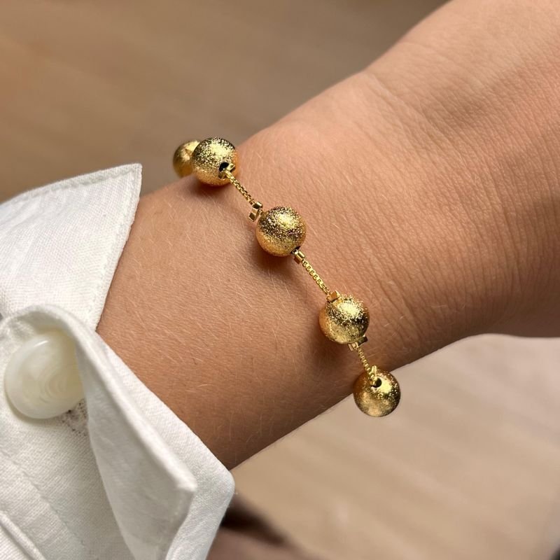 Pulseira Esfera Fosco Banho Ouro18k/Prata 925
