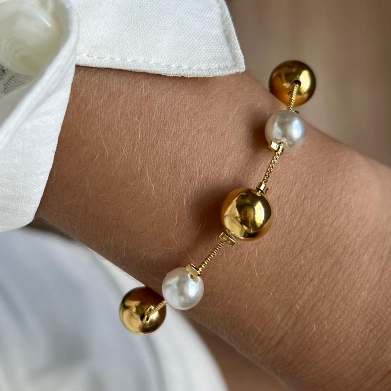 Pulseira Pérola C/ Esfera Banho Ouro 18k