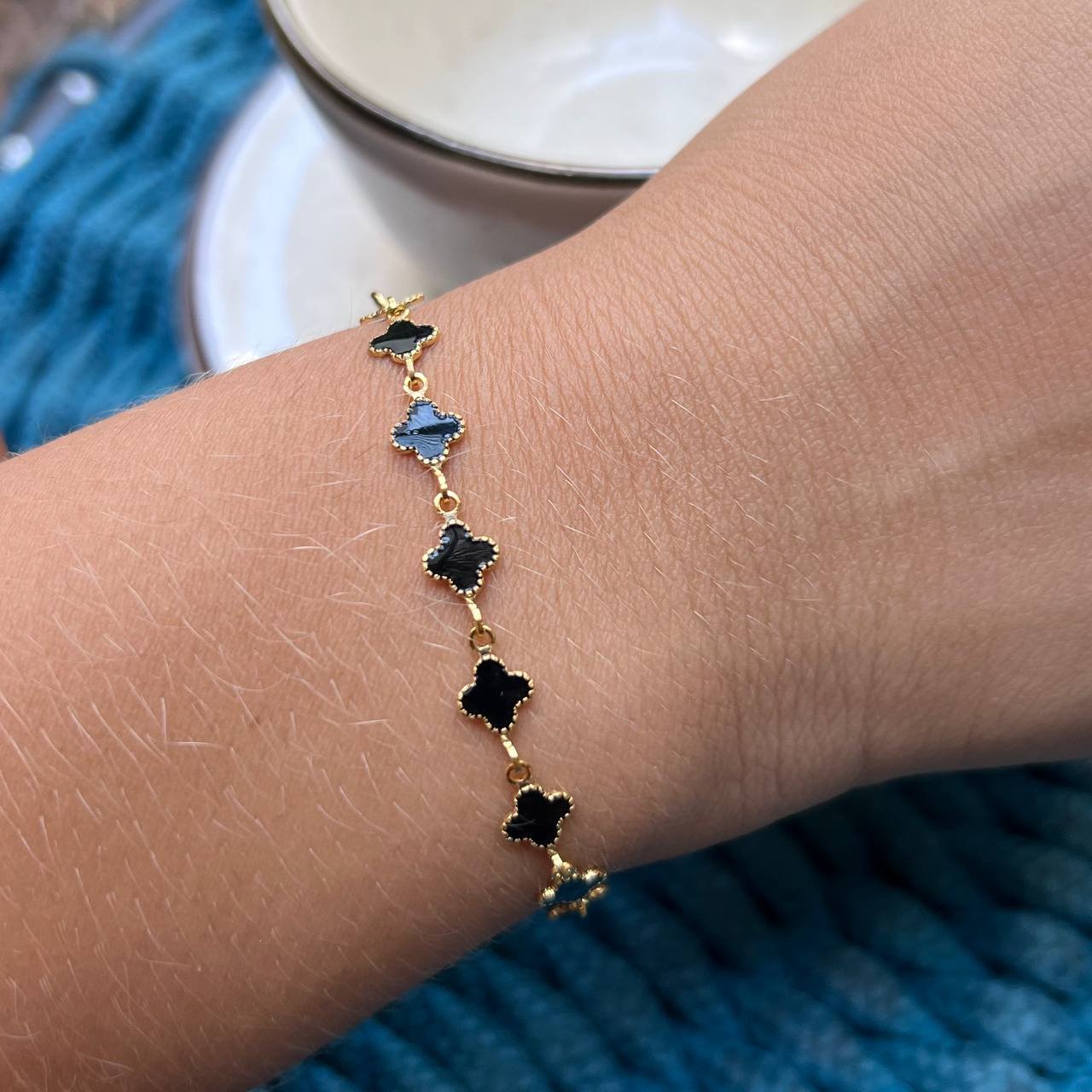 Pulseira Trevo Resinado Banho Ouro 18k/Prata 925