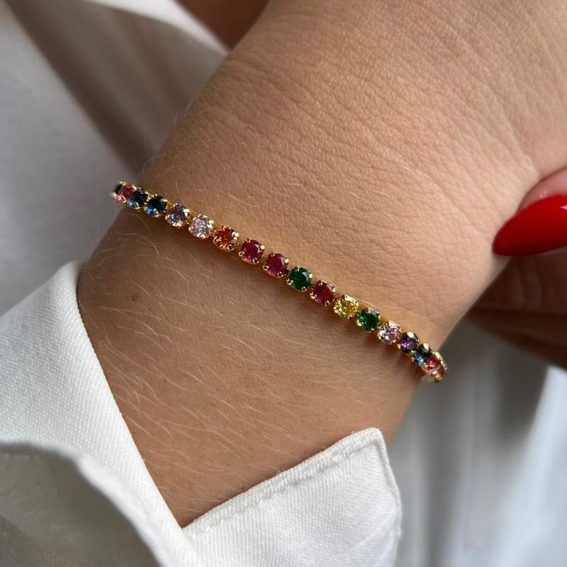 Pulseira Zircônia Multicor Banho Ouro 18k