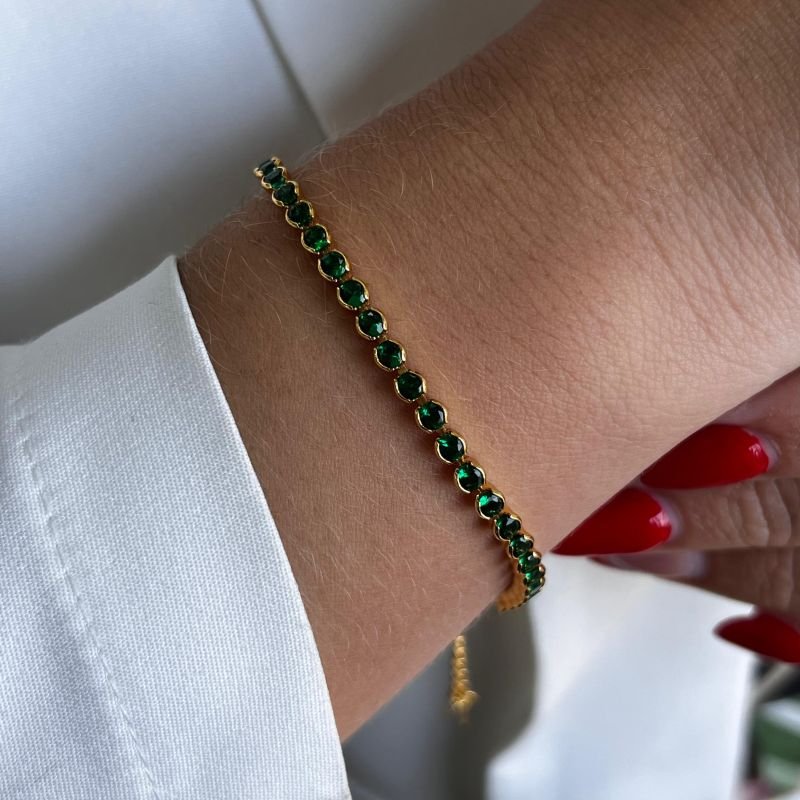 3. Pulseira Zircônia Verde Esmeralda Banho Ouro 18k
