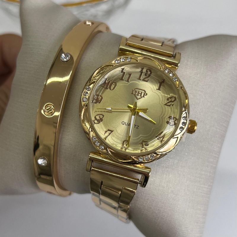 Relógio Dourado c/ Fundo Dourado Linha Premium