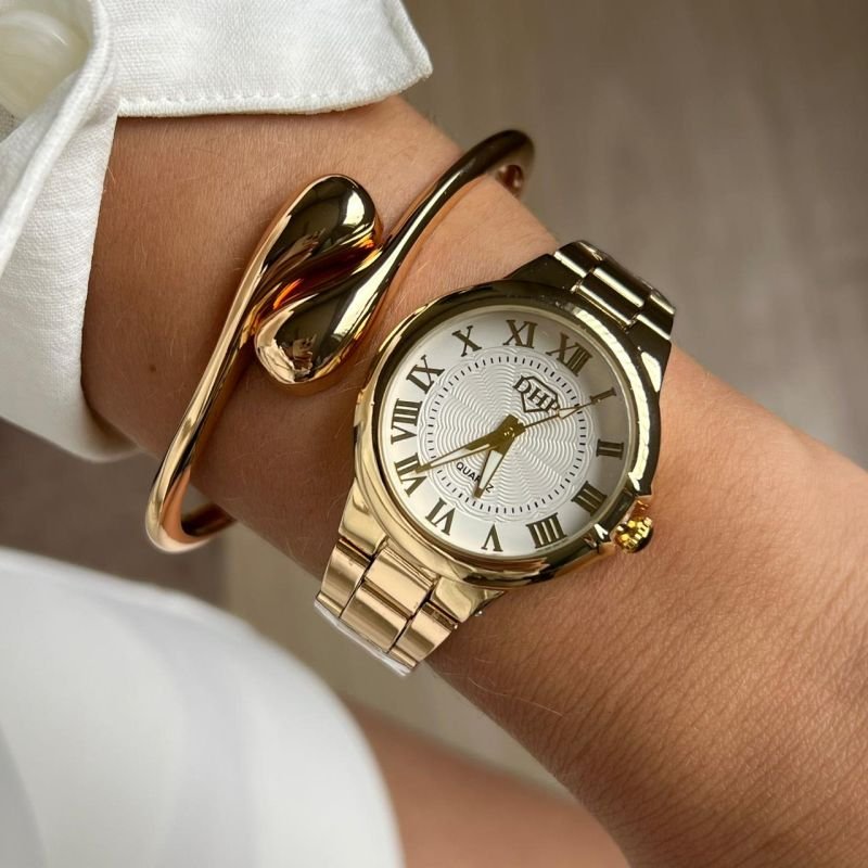 Relógio Feminino Dourado C/ Fundo Branco Linha Premium