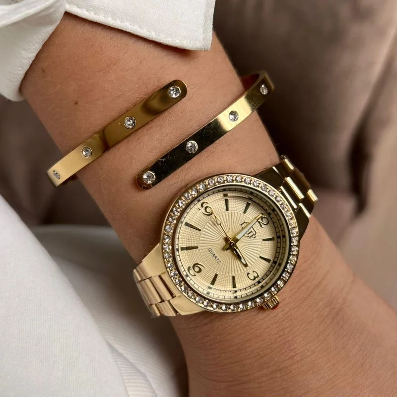 Relógio Feminino Dourado c/ Fundo Dourado Linha Premium