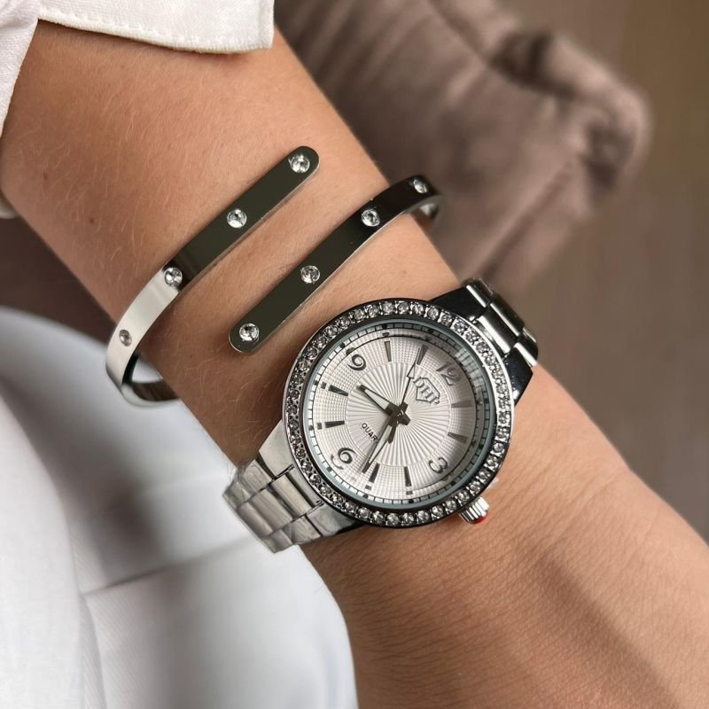 Relógio Feminino Ródio c/ Branco Linha Premium