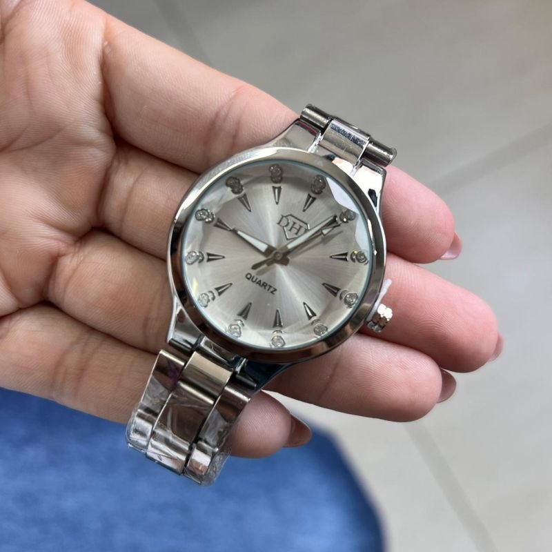 Relógio Feminino Ródio Fundo Branco