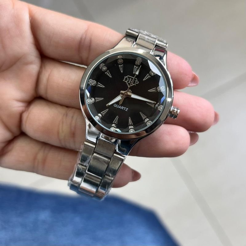 Relógio Feminino Ródio Fundo Preto