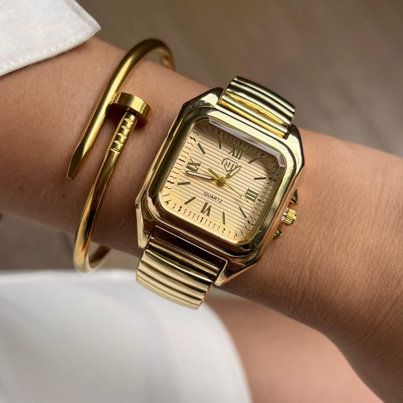 Relógio Unissex Quadrado Pulseira Elástica Linha Premium