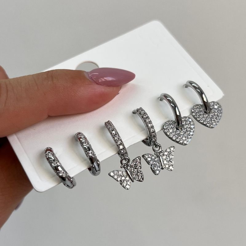 3. Trio de Brinco Biju Fina Dourado/Ródio