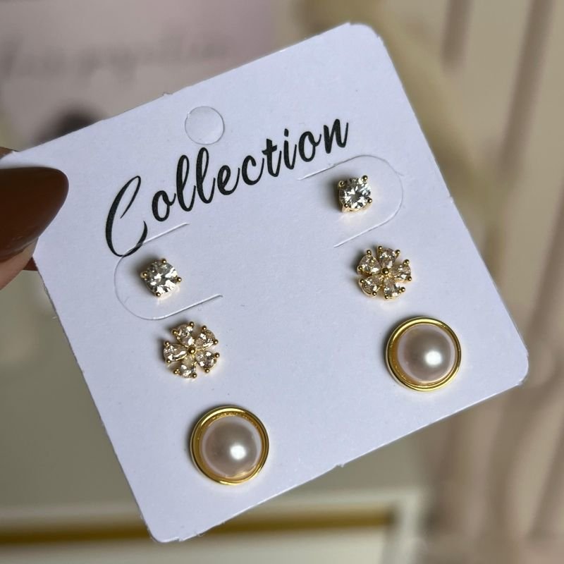 Trio De Brinco Biju Fina Dourado/Ródio