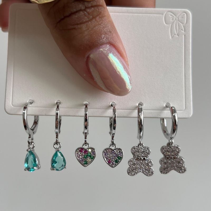 Trio de Brinco Biju Fina Ródio