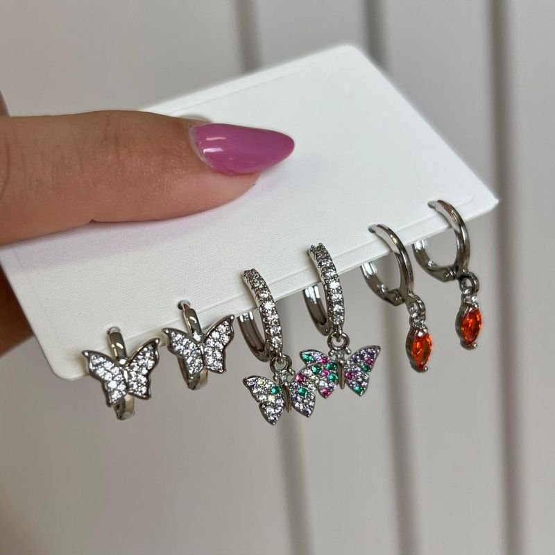 Trio de Brinco Biju Fina Ródio