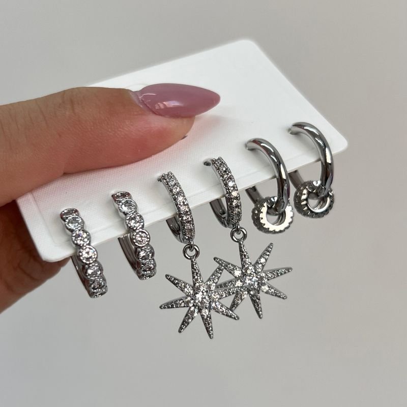 Trio de Brinco Estrela Biju Fina Dourado/Ródio
