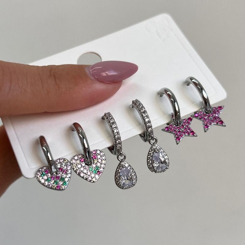Trio de Brinco Multicolor Biju Fina Ródio